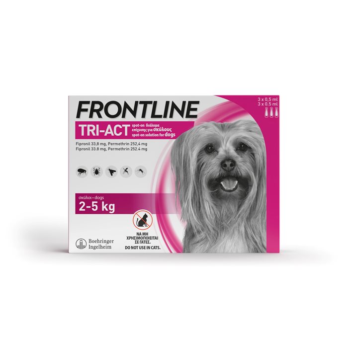 פרונטליין טרי אקט לכלב במשקל 2-5 ק"ג אמפולות נגד פרעושים וקרציות
