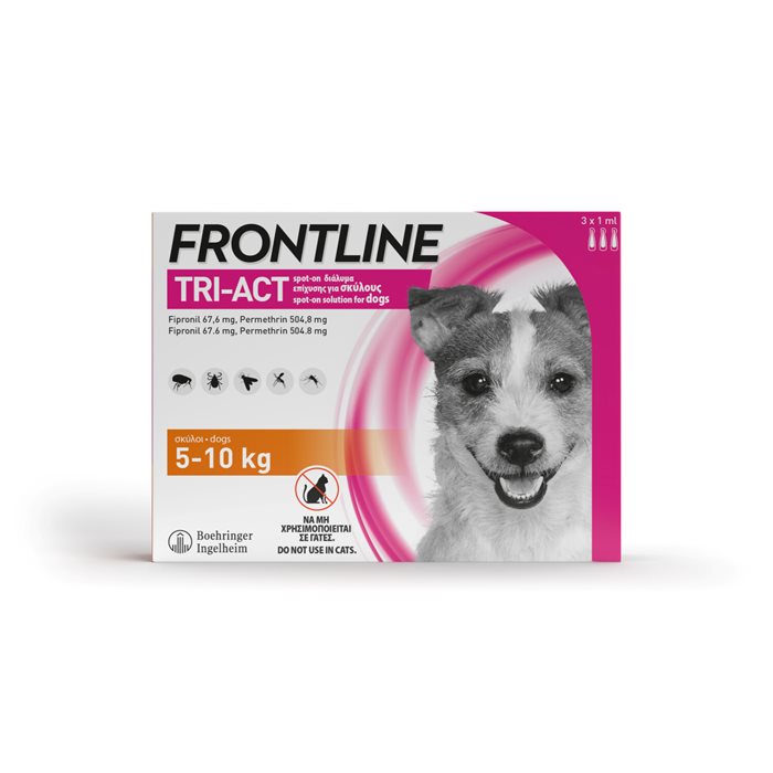 פרונטליין טרי אקט לכלב במשקל 5-10 ק"ג אמפולות נגד פרעושים וקרציות